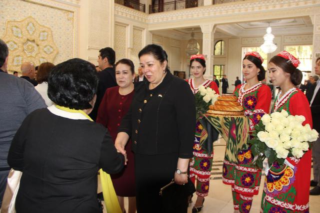 Меҳмононро дар Фурудгоҳи байналмилалии Душанбе Вазири фарҳанги Ҷумҳурии Тоҷикистон Матлубахон Сатториён, Раиси Кумитаи кор бо занон ва оила Бунафша Файзиддинзода ва раиси кумитаи Маҷлиси намояндагони Маҷлиси Олии Ҷумҳурии Тоҷикистон оид ба масъалаҳои иҷтимоӣ, оила ва ҳифзи саломатӣ Сумангул Тағойзода ва истиқбол намуданд.