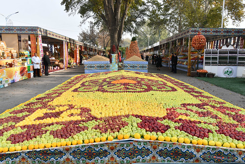 Меваҷот, сабзавот, ғалладонагӣ, биринҷ, хушкмева, асал ва дигар навъу намунаҳои маҳсулоти кишоварзиро заҳматкашони шаҳру ноҳияҳои вилояти Суғд ба таври пирамида ва тасвирҳои гуногун ба намоиш гузоштанд, ки собитгари фаровонии ҳосил дар соли 2024 мебошад.