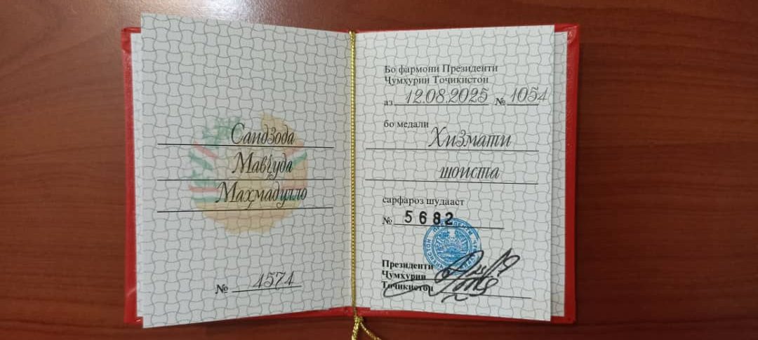 Сармуҳаррири маҷаллаи “Фирӯза” Мавҷуда Саидзода, дар арафаи Ҷашни Истиқлол бо Фармони Асосгузори сулҳу ваҳдати миллӣ – Пешвои миллат, Президенти Ҷумҳурии Тоҷикистон, Ҷаноби олӣ, муҳтарам Эмомалӣ Раҳмон бо мукофоти давлатӣ – медали “Хизмати шоиста» қадрдонӣ гардид.